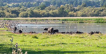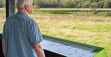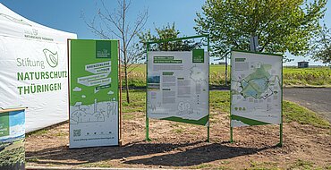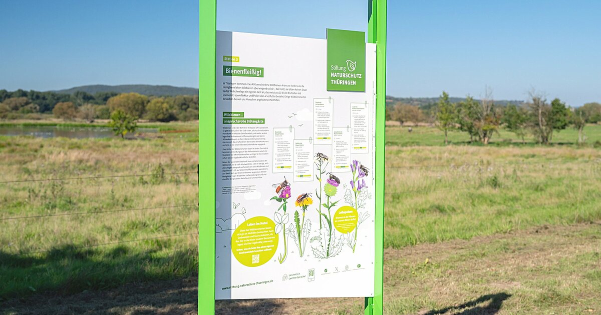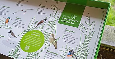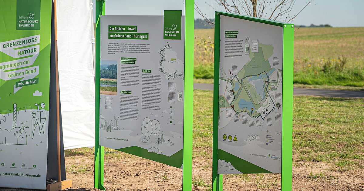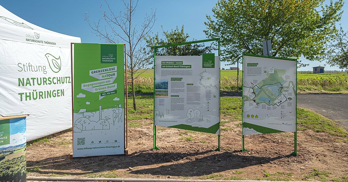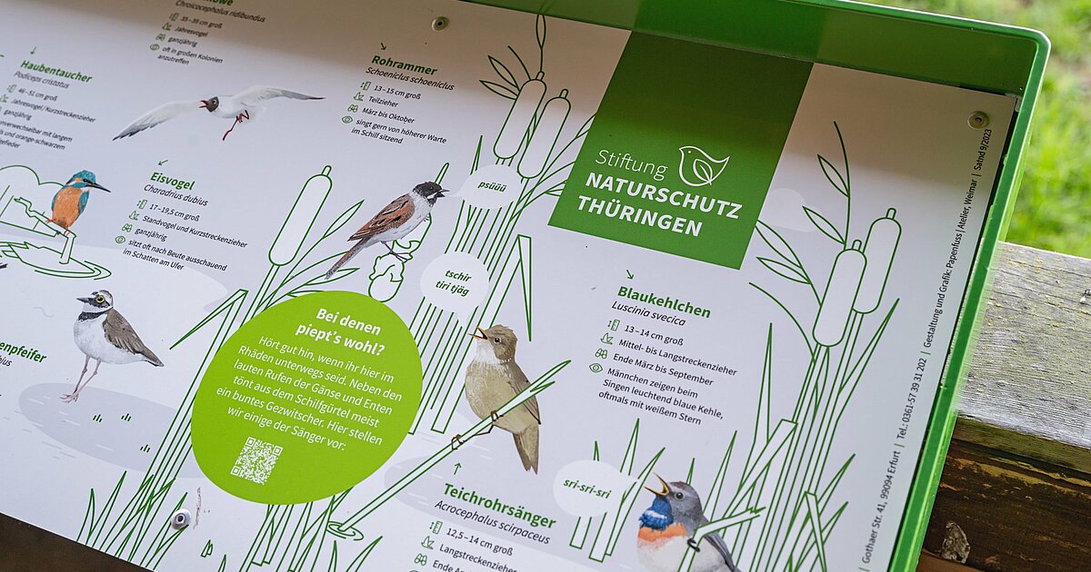 Seit Sommer 2023 hat die Stiftung Naturschutz Thüringen in Zusammenarbeit mit der stadt Werra-Suhl-Tal ein neues Beschilderungskonzept im thüringischen Teil des Dankmarshäuser Rhädens umgesetzt. Die modernen und interaktiven Schilder laden zum Entdecken und Lernen ein. An insgesamt elf Stationen erfahren Besuchende alles zu Wasservögeln, extensiver Beweidung, Bibern, Obstbäumen und viel mehr!